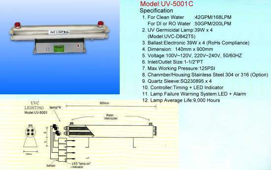 (2) UV germicidal lamp : 39W x 4 ( Model:UVC-D842T5)